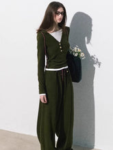 A refined knit set inspired by sporty elegance with a soft Miu-style sensibility. Designed for effortless layering and everyday wear, this set features a slim-fit knit base top paired with relaxed, straight-leg pants for a balanced and flattering silhouette. The clean lines and gentle stretch enhance comfort while subtly sculpting the body, making it an ideal choice for casual styling, travel, or elevated daily outfits. Available in multiple colorways, each variation delivers a slightly different texture and fit expression while maintaining a cohesive, modern aesthetic.