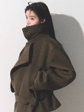 Waist-Defining Silhouette Stand-Collar Wool Coat