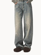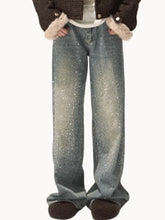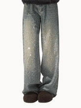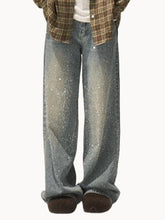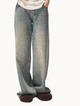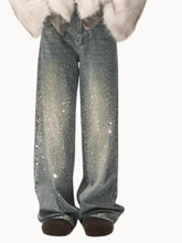 A statement pair of straight-leg jeans crafted from pure cotton and finished with a vintage-inspired washed effect. Featuring bold, three-dimensional crystal embellishments that catch the light, this design balances a relaxed, classic silhouette with eye-catching detail. The clean straight cut creates a slimming line through the leg, while the soft cotton denim ensures comfort and durability—making these jeans an elevated choice for everyday wear with a subtle edge of glamour.