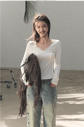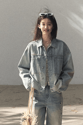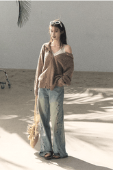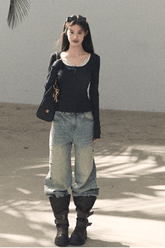 Inspired by the textures and traces of spring, these vintage-style denim pants feature a washed, slightly distressed finish with subtle embroidered detailing. The straight wide-leg silhouette delivers a relaxed, effortless fit while visually elongating the legs. Crafted for comfort and versatility, this loose-cut design blends retro character with everyday wearability, making it an essential piece for casual spring styling.
