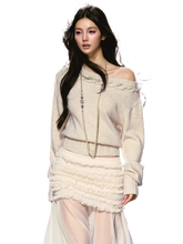 This elegant knit sweater features a flattering off-shoulder neckline that highlights the collarbone while creating a relaxed yet feminine silhouette. The design combines a softly structured off-shoulder cut with a subtly cinched waist, shaping the body line while maintaining a comfortable and effortless feel.