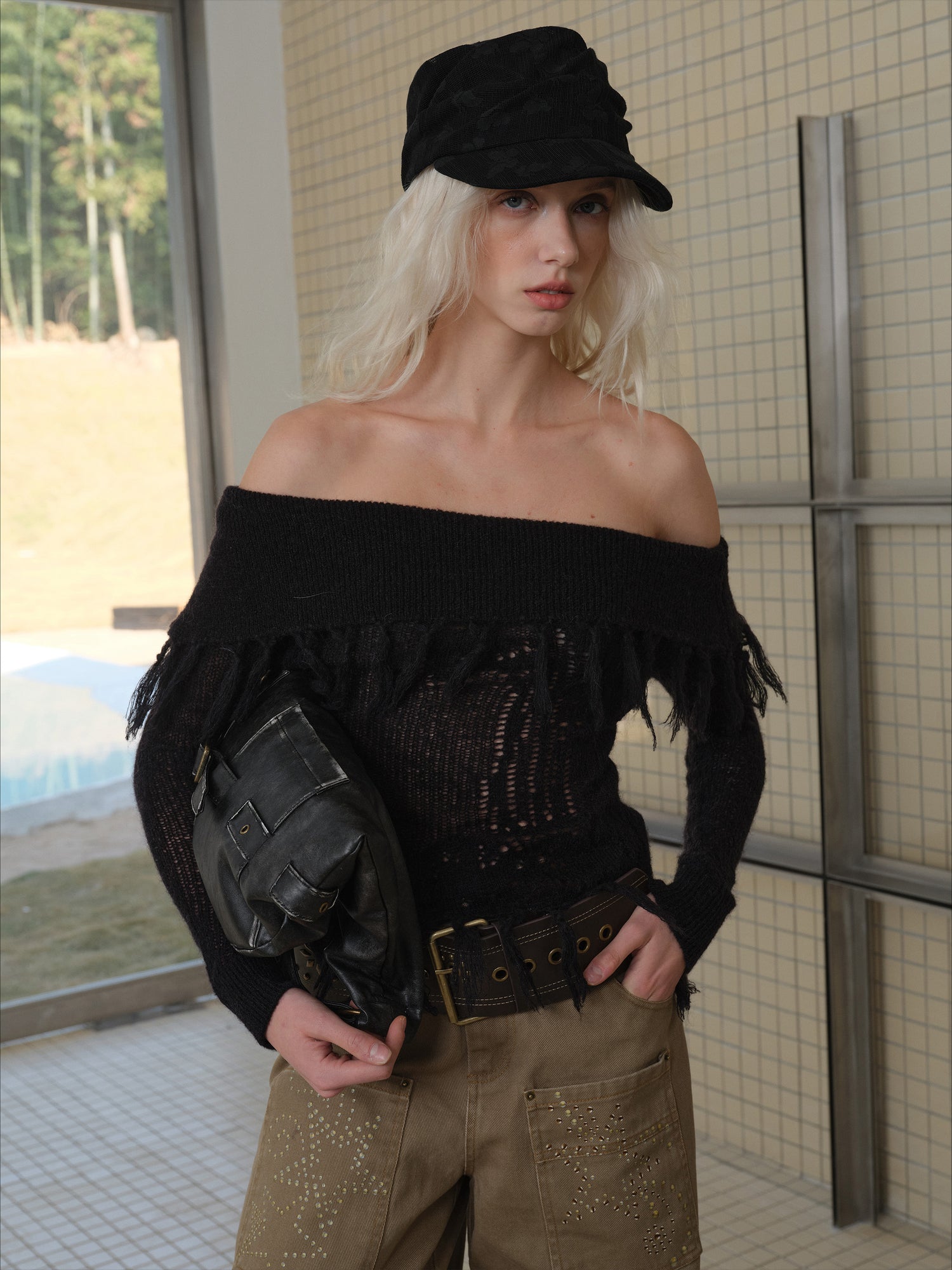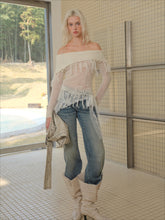 Off-Shoulder Mohair Fringe Top - CHINASQUAD