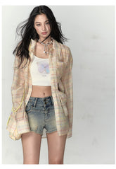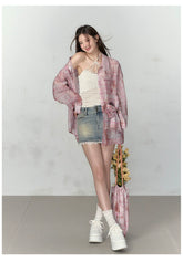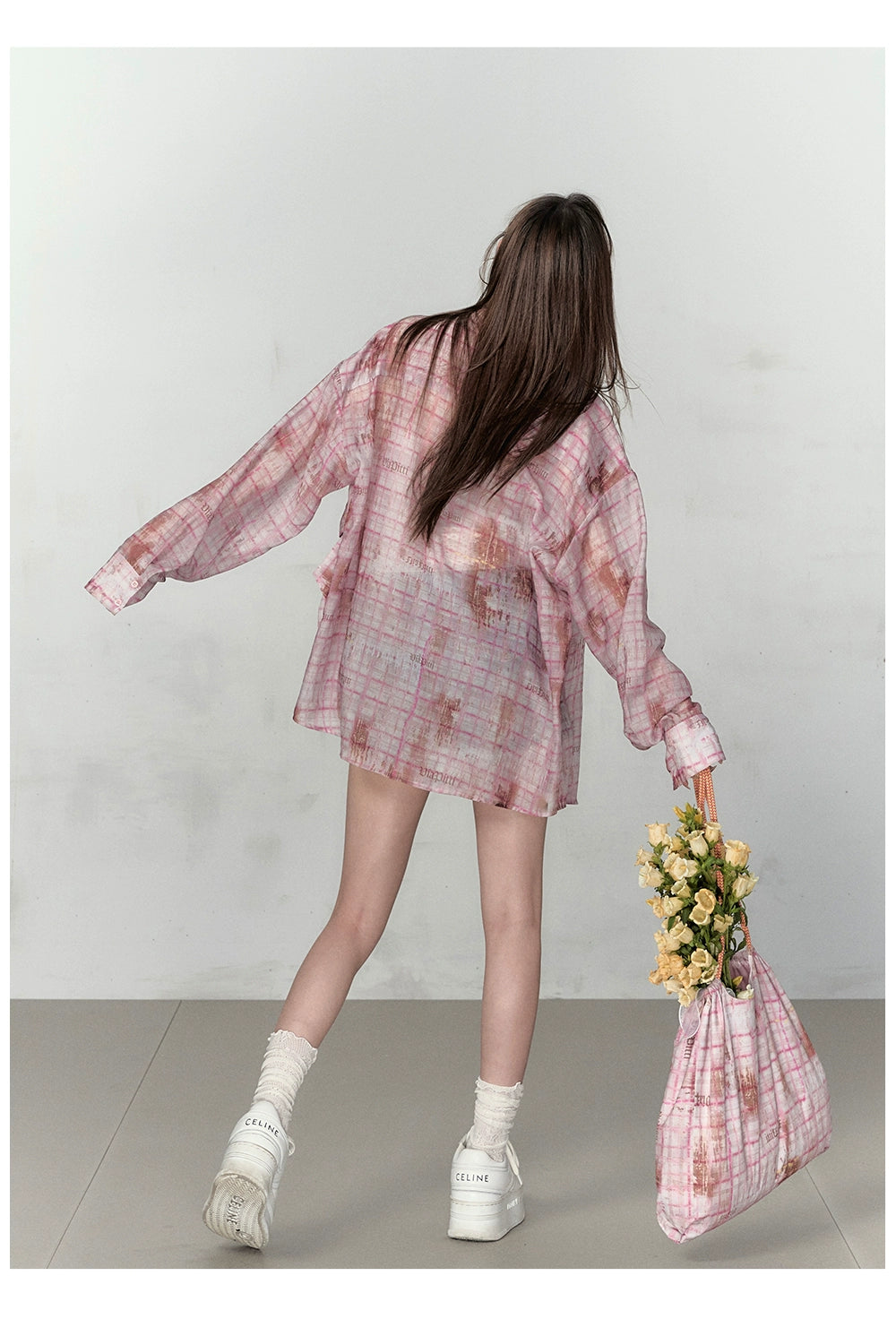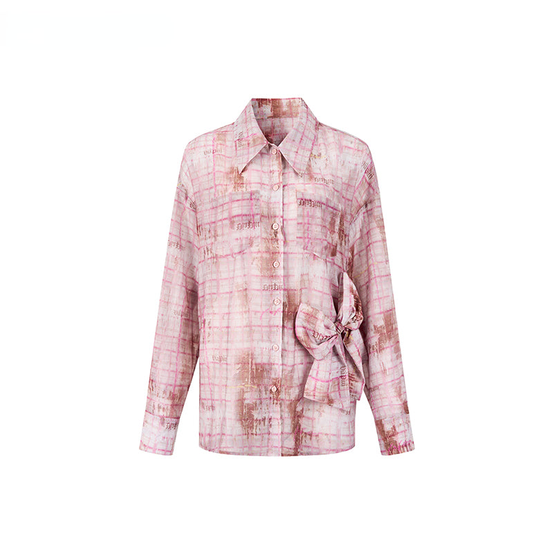 Pink & Yellow Bow Tie Plaid Shirt - CHINASQUAD