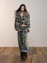 Plaid Detachable Fur Collar Two-Piece Shirt Set