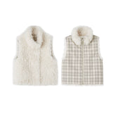 This reversible vest combines cozy sherpa fleece with a stylish plaid fabric, offering two versatile looks in one piece. The soft, textured fleece side provides warmth and comfort, while the plaid side adds a touch of classic charm. Designed with a relaxed fit, it’s perfect for layering over sweaters or shirts for a chic and practical seasonal outfit.