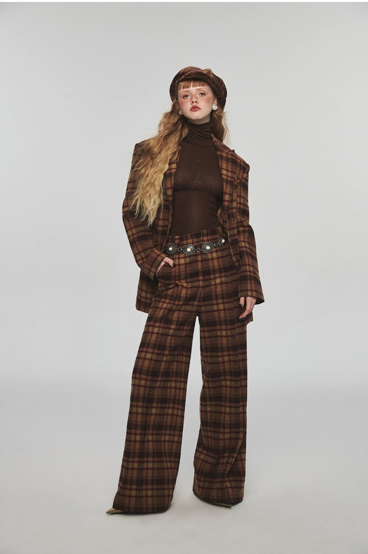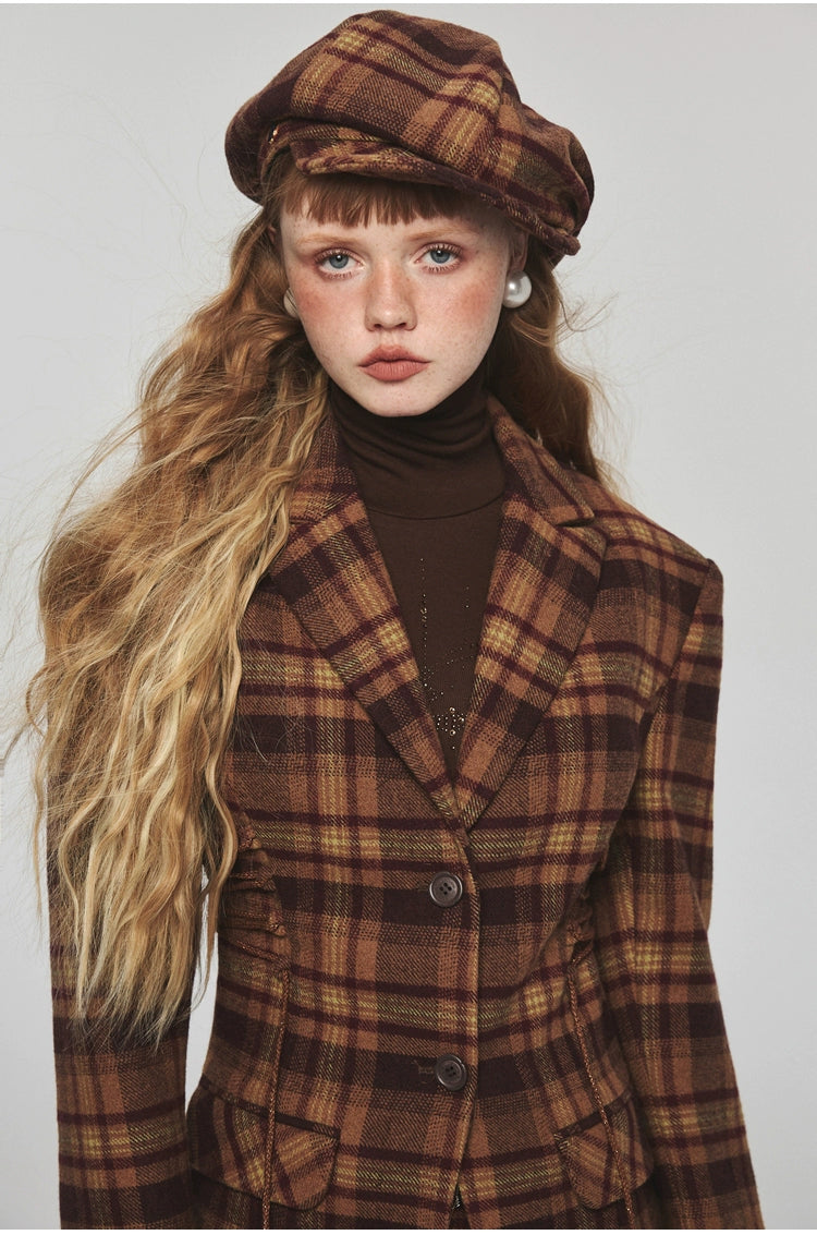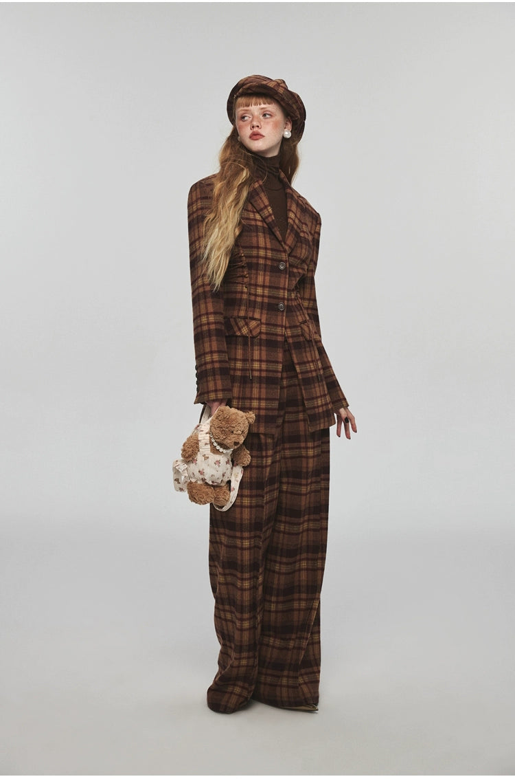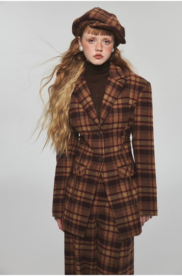 Plaid Slim-fit Waist-tie Blazer - CHINASQUAD