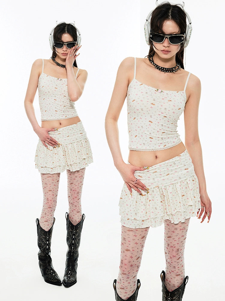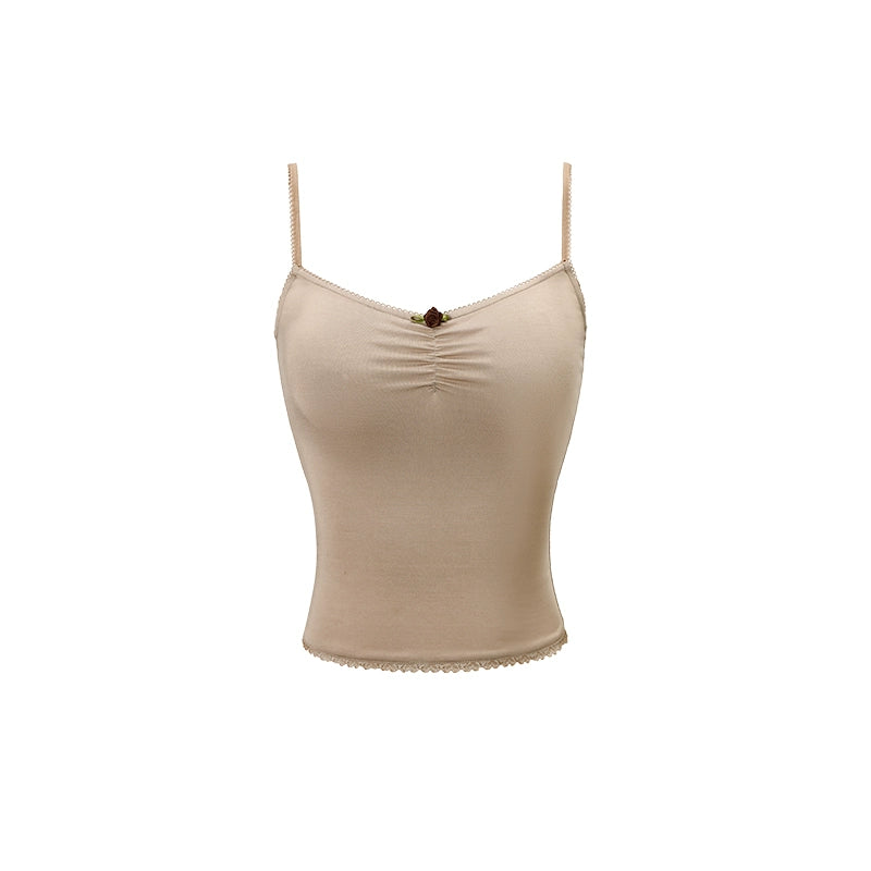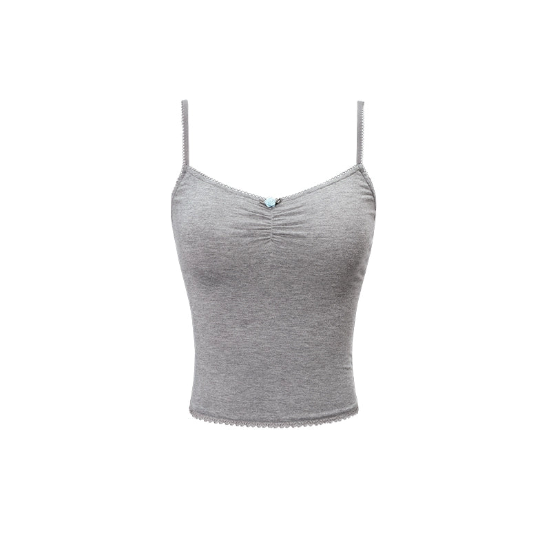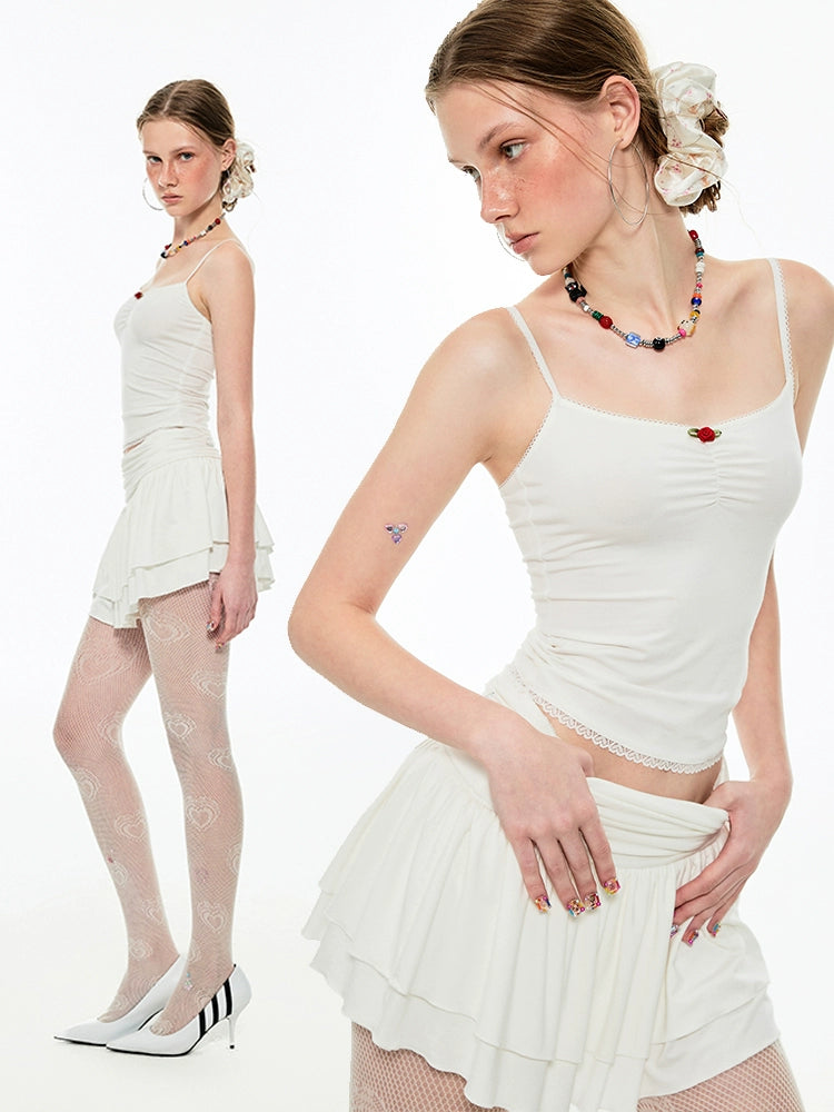 Pleated Lace Waist-cinched Tank Top - CHINASQUAD