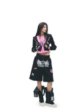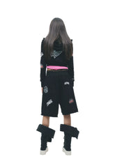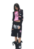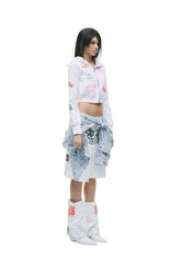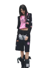 This two-piece set channels a bold punk millennium aesthetic, featuring a striking black-and-white color palette. Designed with custom-developed fabric, the set incorporates distressed hollow detailing for an edgy, deconstructed look. The top is enhanced with water-based graphic prints, adding texture and visual depth. The silhouette is fitted yet comfortable, balancing attitude with everyday wearability. Perfect for statement styling, this set merges rebellious street culture with contemporary fashion sensibility.