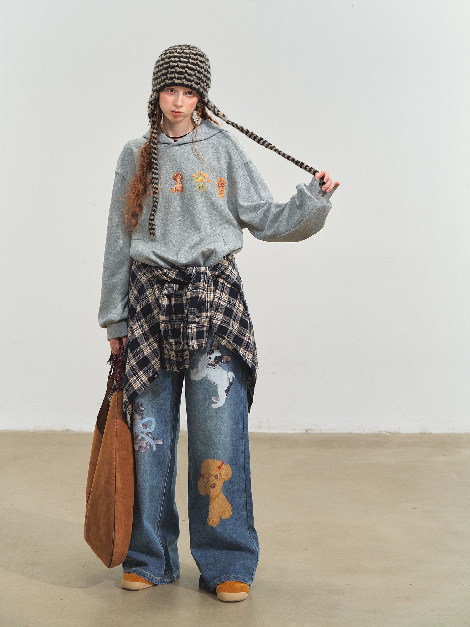 Puppy Wide‑Leg Denim Pants - CHINASQUAD