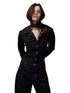 Raw Denim Wide-Shoulder Waist-Cinching Jacket Set