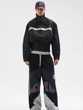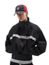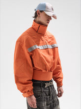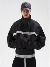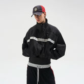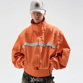 A sleek and functional statement piece, this stand-collar jacket combines a minimalist silhouette with reflective detailing for a contemporary urban aesthetic. Crafted from lightweight, high-density polyester fabric, it delivers both durability and comfort, ideal for transitional weather. The structured shoulders and relaxed fit create a bold yet versatile look, blending streetwear attitude with technical sophistication.