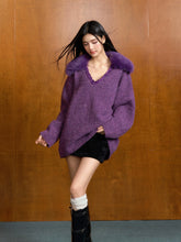 Removable Fur Collar Tweed V-neck Blouse - CHINASQUAD