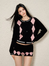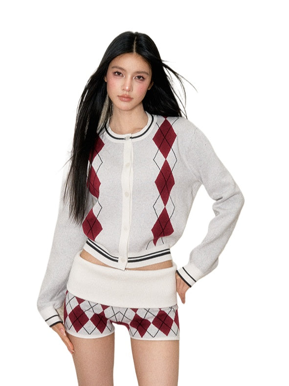 This set includes a vintage-style argyle-patterned knit top with matching slim-fit knit shorts. Designed for comfort and style, it blends a modern fit with retro aesthetics.