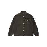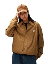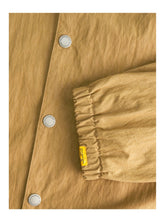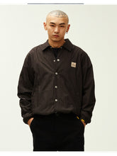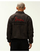 This Randomevent unisex coach jacket is made from a vintage-style twill fabric with a soft fleece lining for extra warmth and comfort. It features a minimalist streetwear design with new chain-stitched lettering that highlights subtle detailing and texture. The piece balances retro and contemporary aesthetics, making it ideal for everyday commuting or casual layering in the fall season.