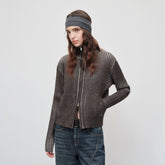 A quiet statement piece inspired by vintage sophistication and modern restraint. This cardigan captures the understated rhythm of urban life through refined texture and structure. Crafted with soft, skin-friendly knit fabric, it features a clean Mandarin collar and subtle layering lines that create a sense of movement. The relaxed yet tailored silhouette makes it perfect for versatile styling — from elegant layering to effortless daily wear.