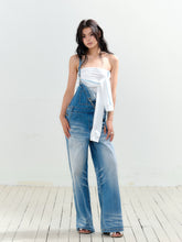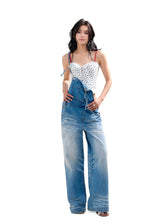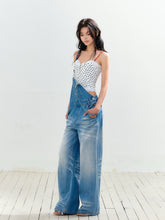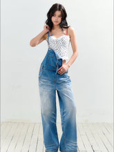 This is a pair of retro thin - strap straight - cut overalls. It has a unique silhouette and is suitable for various casual occasions.