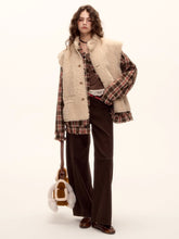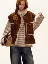 A refined reversible vest featuring a plush faux shearling interior and a smooth suede exterior, designed for a perfect balance of warmth and modern sophistication. The drawstring hem adds adjustability and shape, while the cropped silhouette enhances layering versatility. Ideal for transitional seasons or effortless city styling, this piece embodies understated luxury with a retro-inspired edge.