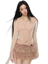 When worn reversed, the extended knit pattern along the back highlights the waistline and adds a sculpted appearance. The soft draped hem can also be styled with a subtle knot, introducing gentle shaping and a refined design accent.