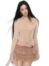 Delicate knit textures are integrated along the front and back panels, forming a subtle leaf-inspired pattern that adds depth and visual detail. The fitted waist design enhances the natural body line, creating a flattering and feminine silhouette.