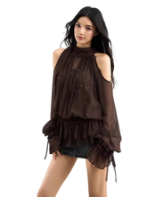 Rhinestone Sheer Chiffon Blouse