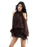 Crafted from sheer chiffon fabric, the material is lightweight, breathable, and softly draped, offering a fluid and airy texture that moves beautifully with the body.