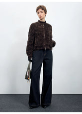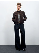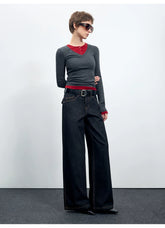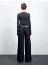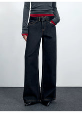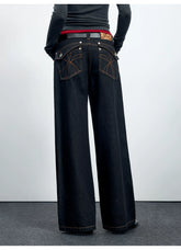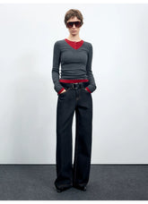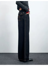 Women’s straight-leg jeans inspired by classic American raw denim aesthetics. Designed with a mid-to-low rise and a relaxed, wide-leg silhouette, these jeans offer a slimming visual effect while maintaining comfort for autumn and winter wear. The clean structure and subtle workwear influence make them an easy everyday essential, pairing well with knits, jackets, or outerwear for a laid-back yet confident look.