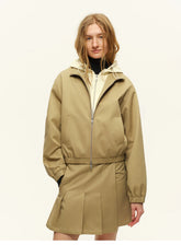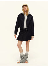 This minimalist A-line mini skirt features a structured pleated silhouette with a smart layered-effect design, enhanced by a side zipper detail for a modern, utilitarian touch. Crafted from crisp, full-cotton fabric, it holds its shape beautifully while offering everyday comfort. The mid-rise waist flatters the figure, making it an easy-to-style staple that pairs effortlessly with knits, shirts, or sweatshirts for a clean, contemporary look.