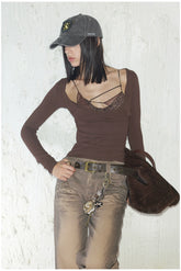 Scoop Neck Layered T-Shirt With Mesh Bra