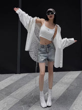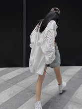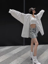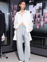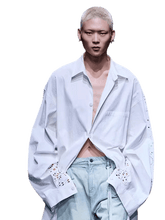 A statement oversized shirt designed with intricate embroidery and distinctive front-and-back panel construction for a modern, fashion-forward look. Featuring a relaxed wide-cut silhouette with dropped shoulders, this piece delivers effortless structure and contemporary appeal. Crafted for Spring/Summer wear, it blends classic shirting elements with bold design details, making it ideal for layering or wearing solo as a standout top.