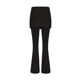 A sleek pair of base leggings designed with a faux two-piece effect and offset panel construction for a modern, sculpting silhouette. Featuring a subtle micro-flare hem, this style elongates the legs while maintaining a clean, streamlined fit. The high-stretch, skin-friendly fabric moves comfortably with the body, making it ideal for Spring/Summer wear—perfect as a standalone statement piece or layered under longer tops for a refined, everyday look.