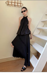 This slimming midi skirt features a fluid acetate fabric with delicate lace detailing and an irregular hemline that adds movement and modern elegance. Designed with a clean high-waist cut, it visually elongates the legs while creating a refined, feminine silhouette. The lightweight drape and soft sheen make it ideal for spring and summer styling, whether paired with knits, blouses, or simple tops. A versatile statement piece that balances romance with contemporary minimalism.