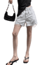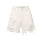 A versatile pair of denim shorts designed with a relaxed A-line silhouette that flatters the hips while offering effortless comfort. Featuring a distressed, raw-hem finish, this style adds a subtle edgy touch to a clean, everyday look. The structured cotton denim provides shape without stiffness, making these shorts an easy go-to for Spring/Summer styling—perfect for pairing with fitted tops, tees, or lightweight shirts.