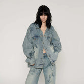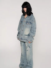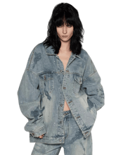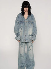 A statement denim jacket designed with a distinctive nautical map graphic embellished with heat-set rhinestone detailing for a refined yet edgy visual impact. Featuring a relaxed, casual silhouette with dropped shoulders, this piece blends classic denim structure with contemporary decorative elements. Crafted for Spring wear, it works effortlessly as a lightweight outer layer, elevating everyday outfits with subtle shine and modern attitude.