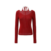 This slim-fitting halter top is crafted from a soft Tencel–wool blend that feels lightweight yet warm, making it ideal for transitional autumn wear. Designed with a tie-back halter neckline and an open-back detail, it highlights the shoulders and back while maintaining a clean, elegant silhouette. The fitted cut makes it perfect as a base layer under jackets or worn alone for a refined, sensual look. A versatile essential that blends comfort, femininity, and modern edge.