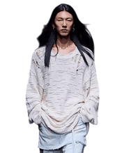 A statement knit sweater designed with a distressed, textured yarn finish that brings depth and a subtle worn-in character to a relaxed silhouette. Featuring dropped shoulders and a loose fit, this piece delivers effortless comfort with a strong street-style attitude. The breathable cotton-blend knit makes it suitable for transitional wear, easily styled with denim or layered over shirts for a modern, casual look.