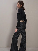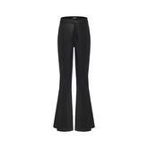 These fashion-forward faux leather pants feature a refined textured finish with panelled tailoring that enhances structure and fit. Designed with a flattering high-waist and subtle micro-flare hem, they create a streamlined silhouette while elongating the legs. The tailored cut balances edge and elegance, making them easy to style for both daily wear and elevated looks. A versatile statement piece that blends modern attitude with timeless appeal.