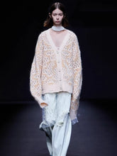 A cozy yet statement-making cardigan designed with a deep V-neckline and an oversized, relaxed silhouette. Crafted with a plush mohair blend and a layered yarn structure, this piece delivers exceptional warmth and texture for Fall/Winter styling. The loose fit and dropped shoulders create an effortless drape, making it ideal for layering over tees, shirts, or knits while maintaining a modern, fashion-forward look.