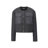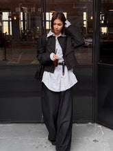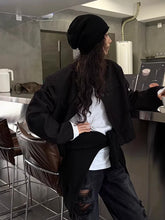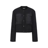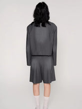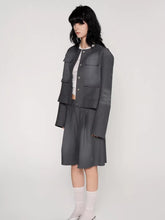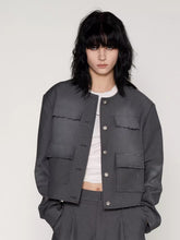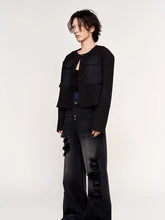 A modern cropped blazer designed with a clean collarless neckline and subtle washed detailing for a relaxed yet refined aesthetic. Finished with raw fringe-edge accents, this piece adds texture and contemporary attitude to classic tailoring. The structured yet lightweight construction makes it ideal for Spring styling, easily paired with high-waisted trousers, denim, or skirts for a sharp, fashion-forward look that balances polish and ease.