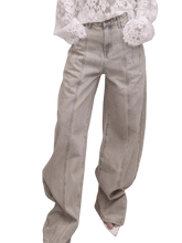 Designed for the Autumn 2025 season, these wide-leg denim pants feature a retro-inspired washed finish with distinctive panelled seam detailing. The elongated wide-leg silhouette visually slims the figure while delivering a relaxed, fashion-forward fit. Subtle distressed effects add depth and character, making this piece an effortless statement for modern street styling and everyday wear.