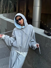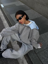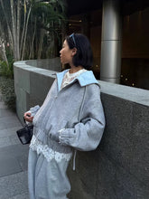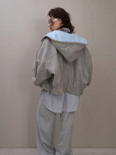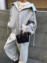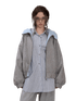 A refined take on collegiate style, this hooded jacket features a bold color-block design combined with contrasting wool paneling for a distinctive layered look. Designed with a relaxed oversized silhouette and dropped shoulders, it delivers both structure and comfort. The fusion of sweatshirt-inspired elements with tailored outerwear details makes this piece ideal for Fall styling, effortlessly balancing youthful campus aesthetics with modern streetwear appeal.