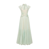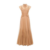 Heavy Lace Halter Corset Mesh Maxi Dress