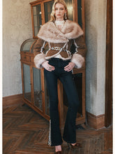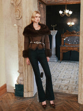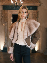 This cropped jacket captures the essence of winter chic with its plush faux shearling texture and bold oversized lapel design. Tailored to a slim fit, it balances structure and softness, offering warmth without bulk. The thick material and refined cut make it perfect for layering over high-waisted trousers or dresses, adding effortless sophistication to any cold-weather look.