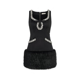 An elegant statement piece that blends satin luster with plush texture, this straight-cut dress channels modern sophistication with a hint of vintage glamour. The smooth satin body offers a subtle sheen and fluid drape, while the faux fur detailing adds depth and luxury. Its relaxed silhouette ensures comfort and movement without compromising refinement, perfect for evening occasions or elevated daywear.