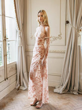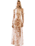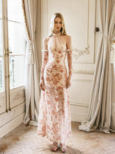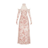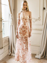 Velvet Halter-Tie Floral Corset Maxi Dress