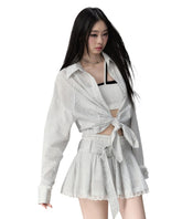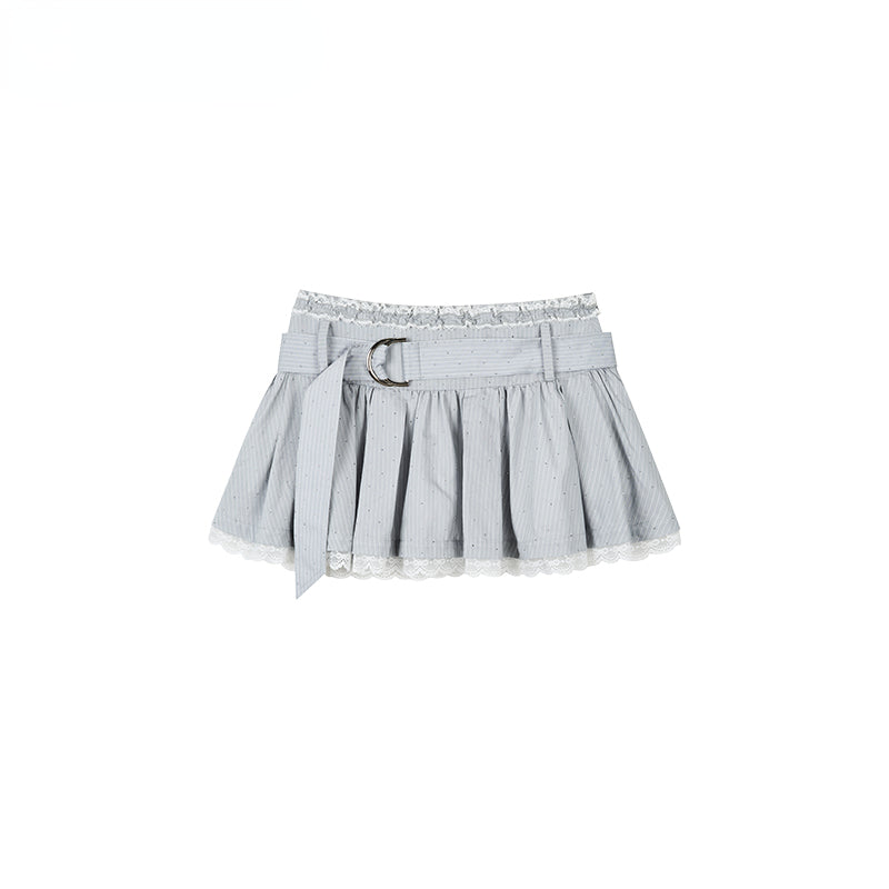 Shiny Rhinestone Striped Lace Patchwork Shirt & Skirt