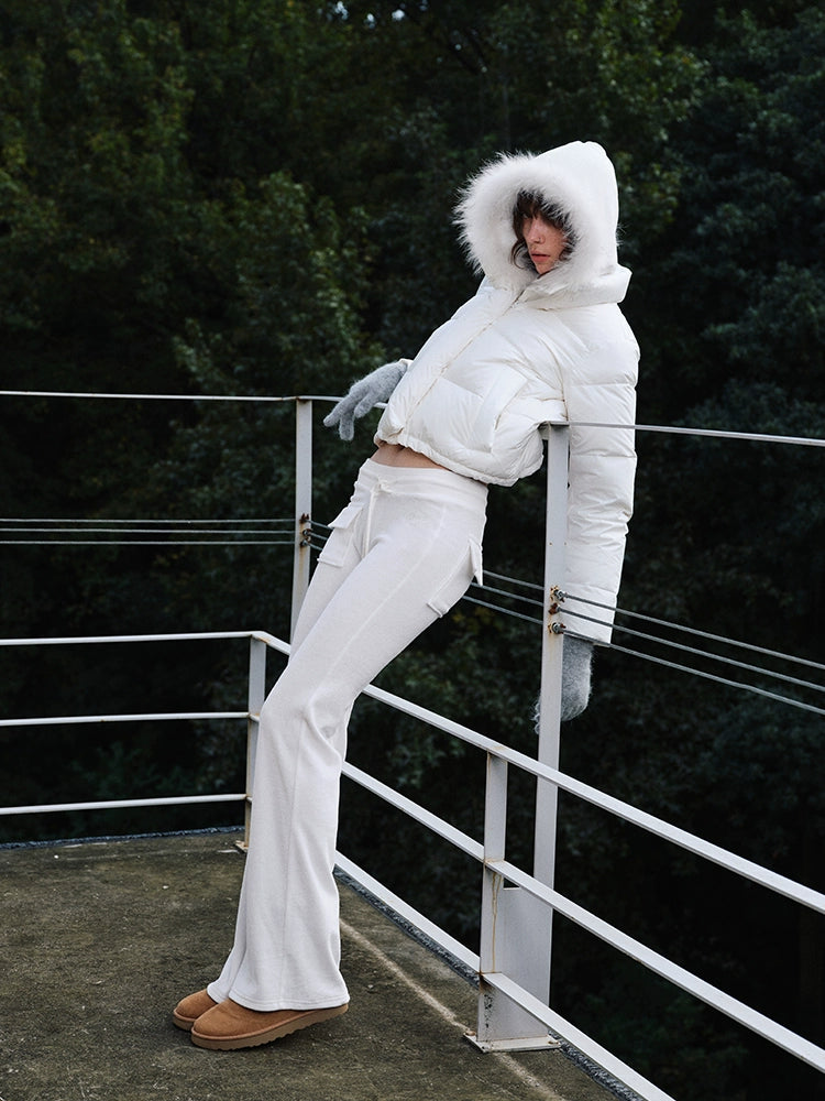 - Features: A stylish, short-length down jacket filled with premium goose down for warmth and comfort.