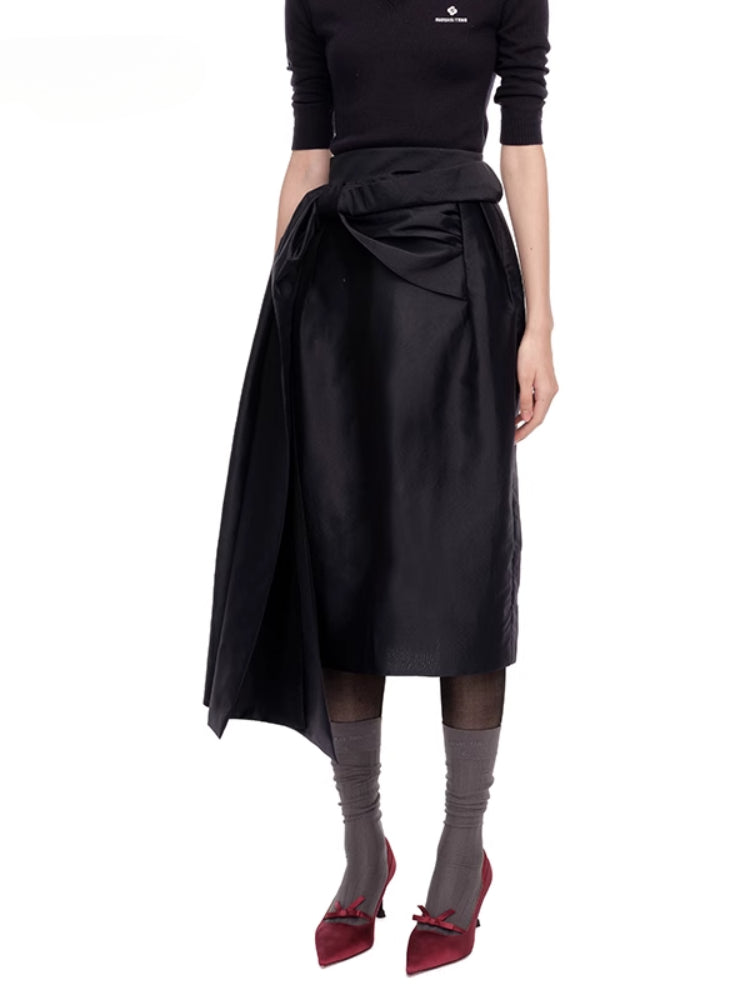 Side Bow-Detail Long Skirt - CHINASQUAD