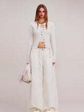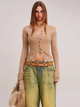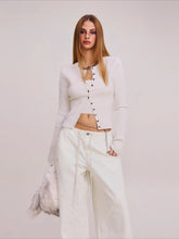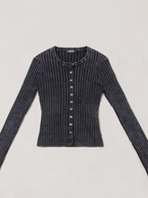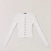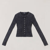 From SMFK’s 2025 vintage knitwear series, this cardigan captures a refined sense of retro rebellion through its ribbed texture and stone-wash finish. Featuring a slim fit and front button closure, it accentuates the body’s natural lines while maintaining comfort and elasticity. The premium cotton-viscose blend fabric creates a soft hand feel with subtle sheen, and SMFK’s garment-dyeing process brings depth and individuality to each piece. A versatile layering essential that balances effortless femininity with modern edge.