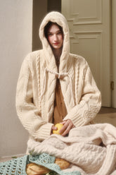 Cozy, relaxed, and endlessly versatile — the “Snow Yarn” cardigan captures the warmth and charm of hand-knit craftsmanship. Made from a soft wool blend with a plush, chunky texture, it delivers a comforting weight and timeless silhouette. The loose fit drapes effortlessly over any outfit, creating a casual yet elegant look that transitions seamlessly from indoors to outdoors. Perfect for layering through chilly days, this piece embodies easy sophistication and natural warmth.