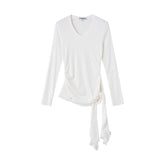 Delicately designed with a soft, romantic silhouette, this asymmetric top features a sweetheart neckline and gathered ruched details that contour the body for a flattering fit. The irregular hemline adds a graceful drape and modern elegance, while the subtle texture of the fabric enhances its refined femininity. Perfect for pairing with skirts or high-waisted trousers for an effortlessly chic look.